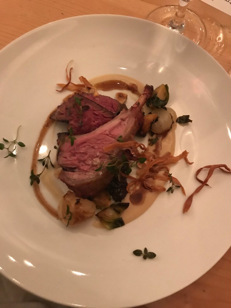 The combination of steak & lamb chop makes sense theoretically, but I struggled with this dish. If I ate the wrong components with each respective meat, the taste threw me off. They clearly were not intended to go together. I made the mistake of getting a bite of hazelnuts & Brussels sprouts with the steak, instead of with the lamb chop, and my whole palate was confused. After that, I was very careful to consult the menu and double check each forkful before I put it in my mouth.