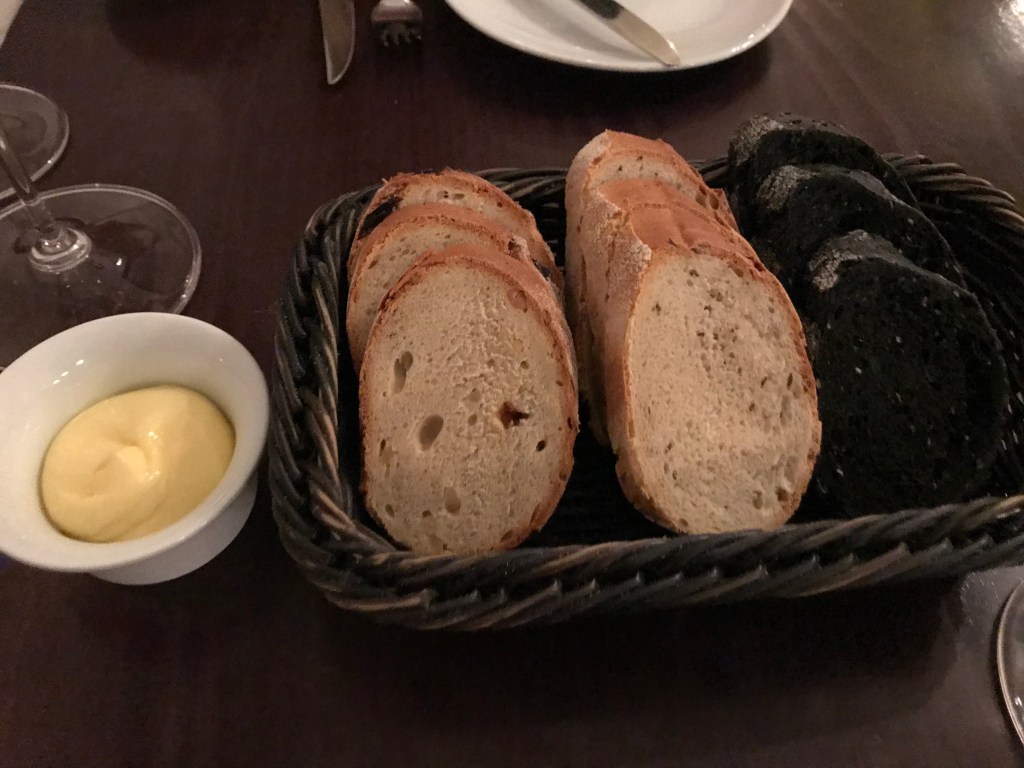 Even though it’s a starter, and not even one of the courses on the tasting menu, the bread basket was probably the most memorable dish for me. The tricolor basket contained a black bread, a nut bread, and a spiced bread (coriander? cumin? I don’t remember). Each was distinct in color and flavor, and all improved by adding a pat of soft butter and a sprinkle of flaky salt using a tiny wooden trowel. Throughout the rest of the meal, I kept coming back to the leftover bits of bread.