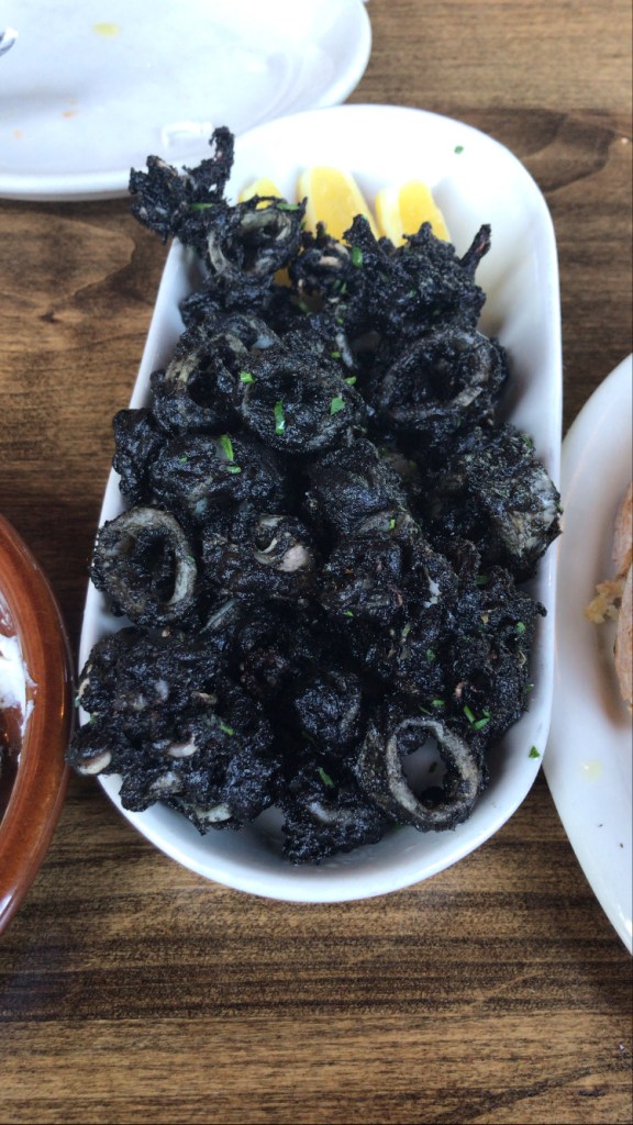 I had the ricotta crostini and the fried rice ball, both famous at Scopa. My favorite was the squid ink calamari. Not because of the ink, but because the breading was so light. Underneath the crisp exterior, I could see the squid and taste it in every bite. It was served with just a squeeze of lemon, which is all I needed (though they do offer lemon aioli for dunking your calamari, too).