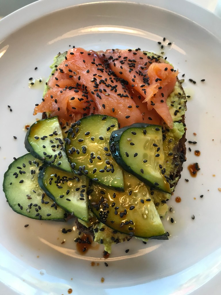 I was pleasantly surprised. Because I was heading out to hike in Malibu, I needed something quick and light, and Cafe Buna fit the bill. The smoked salmon avocado toast was a delight. It tasted like the essence of sushi in the form of avocado toast—soy sauce, black sesame seeds, and lightly pickled cucumbers cut through the creamy avocado, making for a substantial breakfast that still felt light.